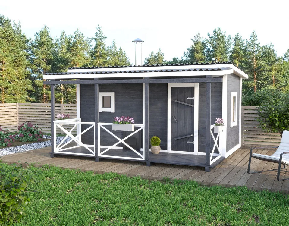• Каркасная баня «Лофт» из кедра 4х2,2 метра Четыре метра элегантной брутальности – это каркасная баня лофт, компактное воплощение свободы от городской суеты и квинтэссенция здорового отдыха в рамках смелого дизайнерского решения. Она, словно миниатюрный завод, перерабатывает ежедневный стресс в пар и ощущение безмятежности, оставаясь при этом ярким акцентом в ландшафтном дизайне. Геометрия каркаса, четкие линии и нарочито грубая отделка задают тон всей конструкции. Здесь нет места лишним деталям, только функциональность и эстетика индустриального минимализма. Дерево, металл и стекло гармонично сочетаются, создавая атмосферу свободы и творчества. Внутреннее пространство, несмотря на компактность, продумано до мелочей. Парилка, отделанная натуральным кедром и оснащенная современной печью, дарит мягкий и обволакивающий пар. Зона отдыха с лаконичной мебелью приглашает расслабиться и насладиться моментом. Большие окна наполняют помещение естественным светом, создавая ощущение простора и единения с природой. Каркасная баня лофт 4 метра – это не просто дань моде, это осознанный выбор в пользу здорового образа жизни и стильного дизайна. Это маленький оазис, где можно забыть о проблемах и восстановить силы, наслаждаясь гармонией пара, дерева и индустриальной эстетики.