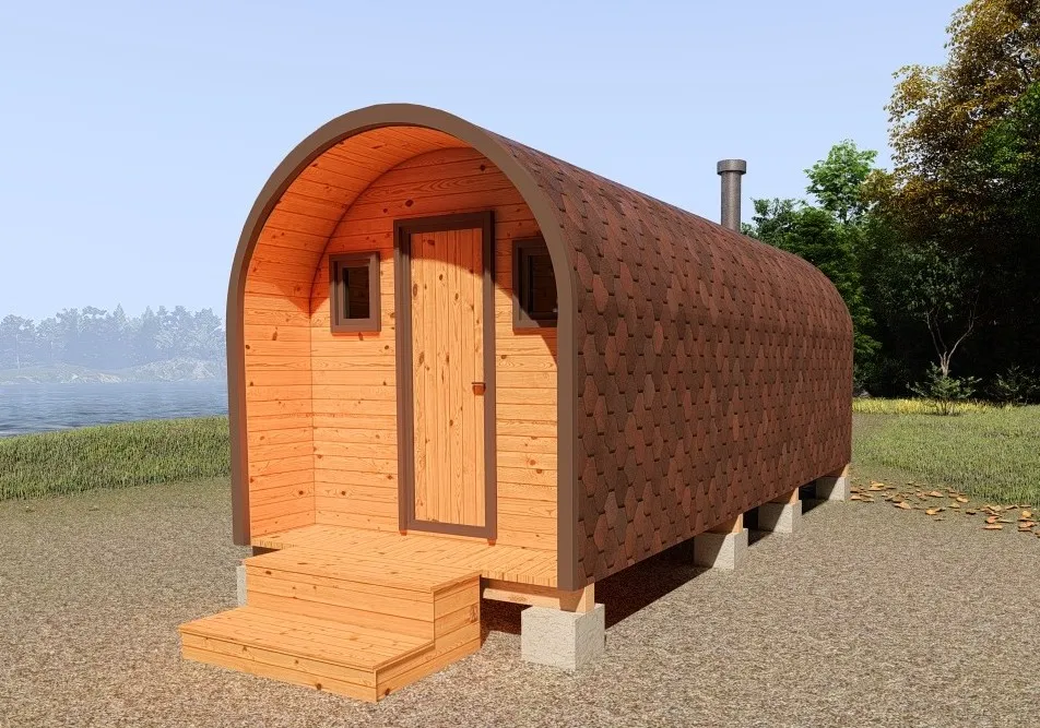 Баня-бочка представляет собой конструкцию в виде бочонка без углов. Такая форма считается оптимальной для равномерного распределения пара по всей внутренней поверхности парной. Таким образом, пар не скапливается в одном месте, а циркулирует по всему объему. Соответственно, круглая (квадратная, овальная) баня экономичная: топится быстро, требует дров мало.