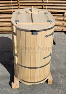 Бондарная фитобочка имеет такое название, потому что выполнена по старинной технологии в шип-паз, без использования каких-либо иных дополнительных скрепляющих элементов. Производственное оборудования позволило для круглых бочек применить лунный паз глубиной 2.5 см, который имеет надежное прилегание досок друг к другу, скрепляя бочку плотно, не пропуская пар и имеет вид фаски. Кедровая Фитобочка - это мини парная, которую можно установить в квартире и каждый день использовать в домашних условиях. Настоящая лечебница для здоровья всей семьи. Во время парения человек сидит внутри кедровой бочки, а голова находится снаружи. Благодаря этому исключается перегрев и процедура парения комфортно переносится пожилыми людьми и детьми.