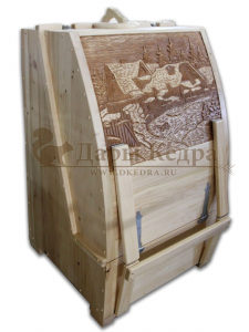 Квадратная фитобочка из кедра - это мини парная, которую можно использовать не только в спа-салонах, но и дома. Толщина стенок составляет 40-45 мм, что позволяет увеличить срок службы изделия. Откидная дверь бочки во время открывания фиксируется внешней подставкой - опорой, которая в закрытом состоянии складывается и не занимает лишнее пространство. Во время парения человек сидит внутри кедровой бочки, а голова находится снаружи. Благодаря этому исключается возможность перегрева. Встроенная ручка из кедра на двери делает эксплуатацию фитобочки более удобной.