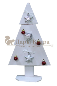 Деревянная елочка, по Вашему желанию, может быть покрашена в зеленый, белый, серый, фиолетовый цвета или покрыта бесцветным маслом, воском, лаком. Дополните новогоднюю красавицу гирляндой, шарами, бантами, и она засверкает по-новому.