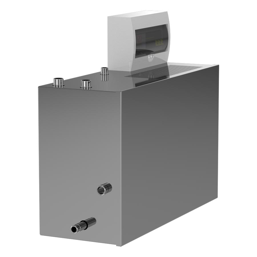 Парогенератор проточный c выносным/встроенным цифровым пультом управления, 12 кВт Проточные парогенераторы подключаются к водопроводу и автоматически добавляют воду в прибор при ее расходовании. Парогенератор служит для образования пара в саунах, хамамах, банях и душевых кабинах. Мощность стоит выбирать в зависимости от объема парной. Работа парогенератора осуществляется за счет встроенного или выносного пульта управления (на ваш выбор). Он позволяет устанавливать температуру, мощность и время процедур парения. При достижении необходимой температуры происходит автоматическое прекращение подачи тепла для нагрева воды. При снижении температуры более чем на 3°С температурный датчик снова включает подогрев. Таким образом время непрерывной работы парогенератора составляет более 12 часов.