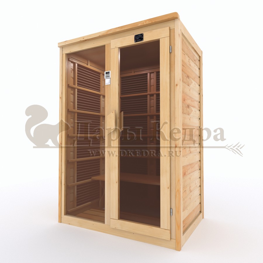 Двухместная инфракрасная сауна кабина из кедра с керамическими излучателями Это специально оборудованная кедровая кабина для прогрева тела человека сухим теплом. Воздух в таких парных не нагревается. Инфракрасные лучи воздействуют на тело, равномерно прогревая мышцы, суставы и органы. Керамические излучатели похожи на лампы, имеют высокую температуру нагрева, поэтому защищены противоожоговыми решетками. Тело человека в таких саунах нагревается интенсивнее. Работает кабина за счет электричества. Двухместная инфракрасная сауна с керамическими излучателями подойдет как для домашнего использования, так и для коммерции. Обращаем Ваше внимание, что в стандартную комплектацию входит трапик для ног, но вы можете его заменить на цельный пол совершенно бесплатно! Целебная древесина кедра и инфракрасные лучи благотворно влияют на организм человека в целом. При регулярном использовании инфракрасной сауны укрепляется иммунитет, улучшается кровообращение и состояние кожи, выводятся токсины.